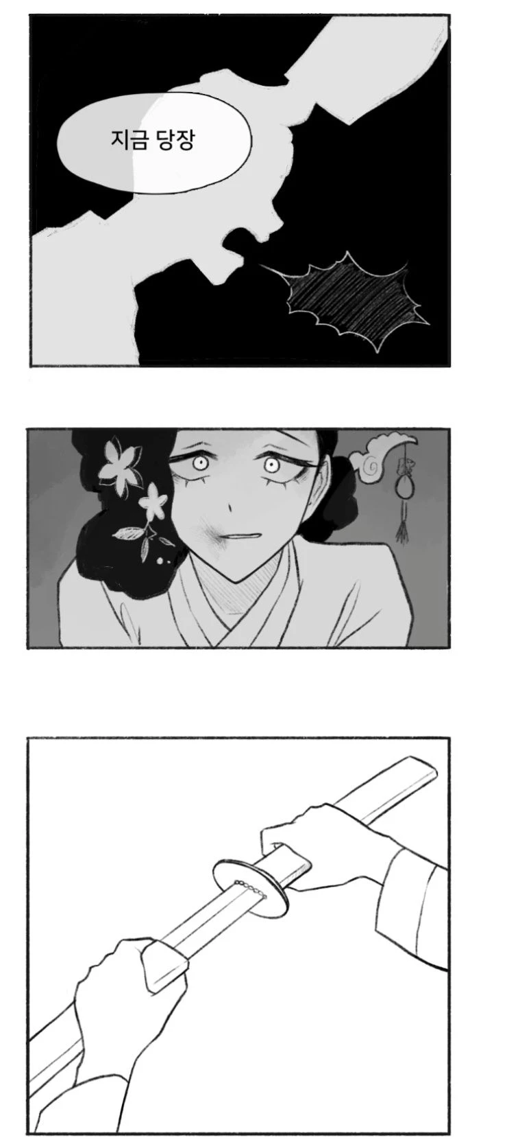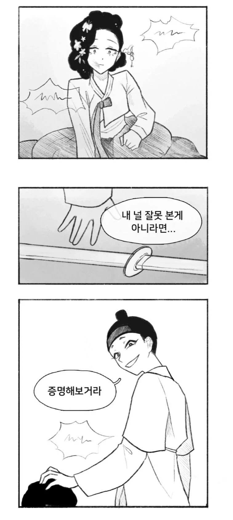 니케의 뺨을 때리고 주저앉는 니케를 보며 씨익 웃었다 내 널 잘못 본게 아니라면.. 니케에게 칼을 건내며 니케에게 칼을 드리미며 니케를 위협했던 남성의 머리채를 잡고 증명해보거라 남성이 소리를 지르지만 무시하고 지금 당장