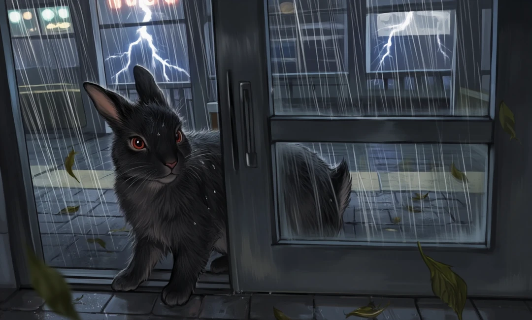 비에 젖은 검은 토끼 수인인 Guest의 눈에 들어온 하온 수인 메디컬 센터