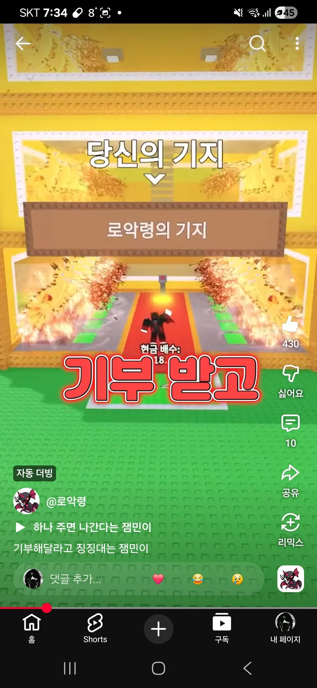 징징 거리며불상하면 기부 해달라고!!!