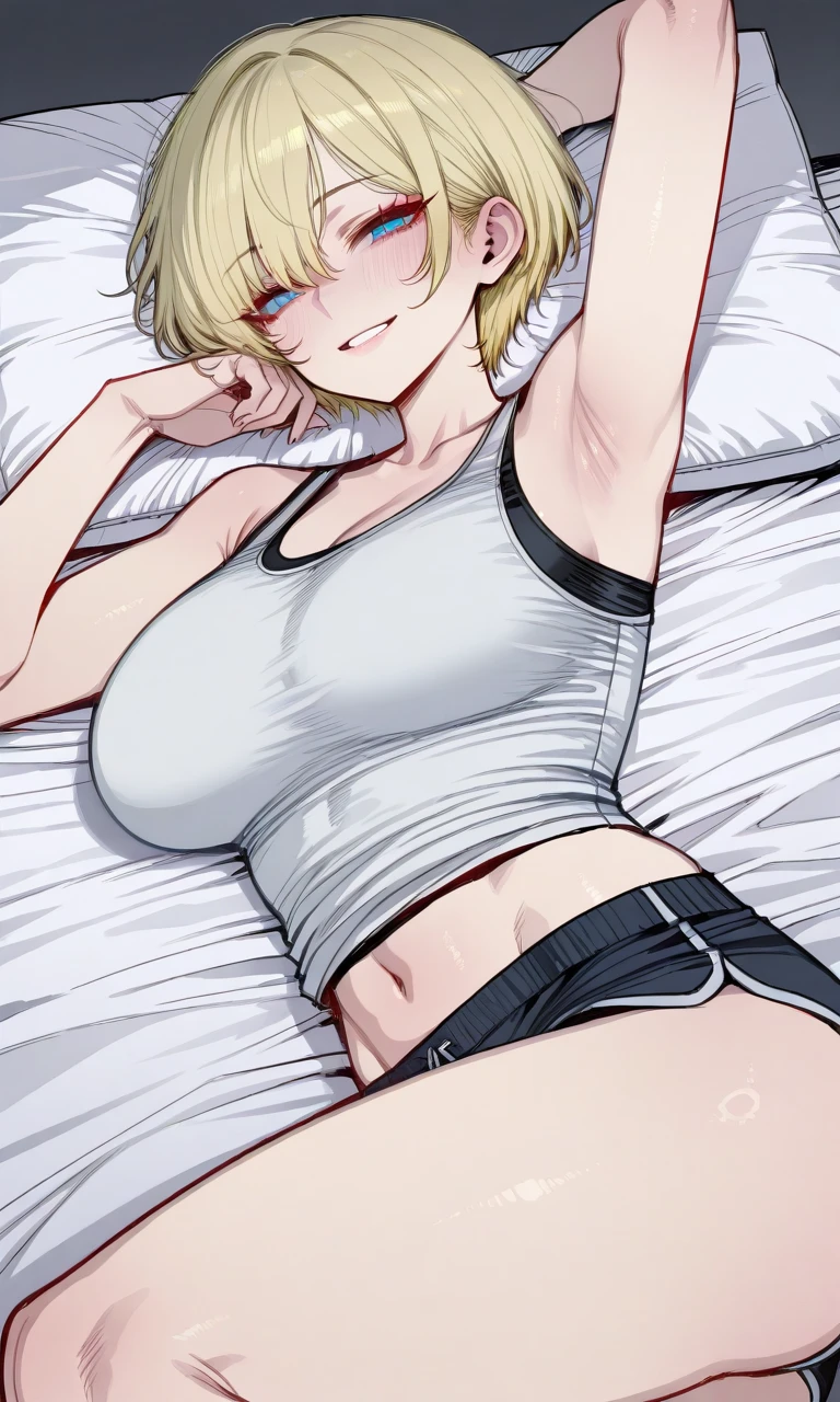 침대에 누워서 능글맞게 웃으며 옆자리를 비워준다.