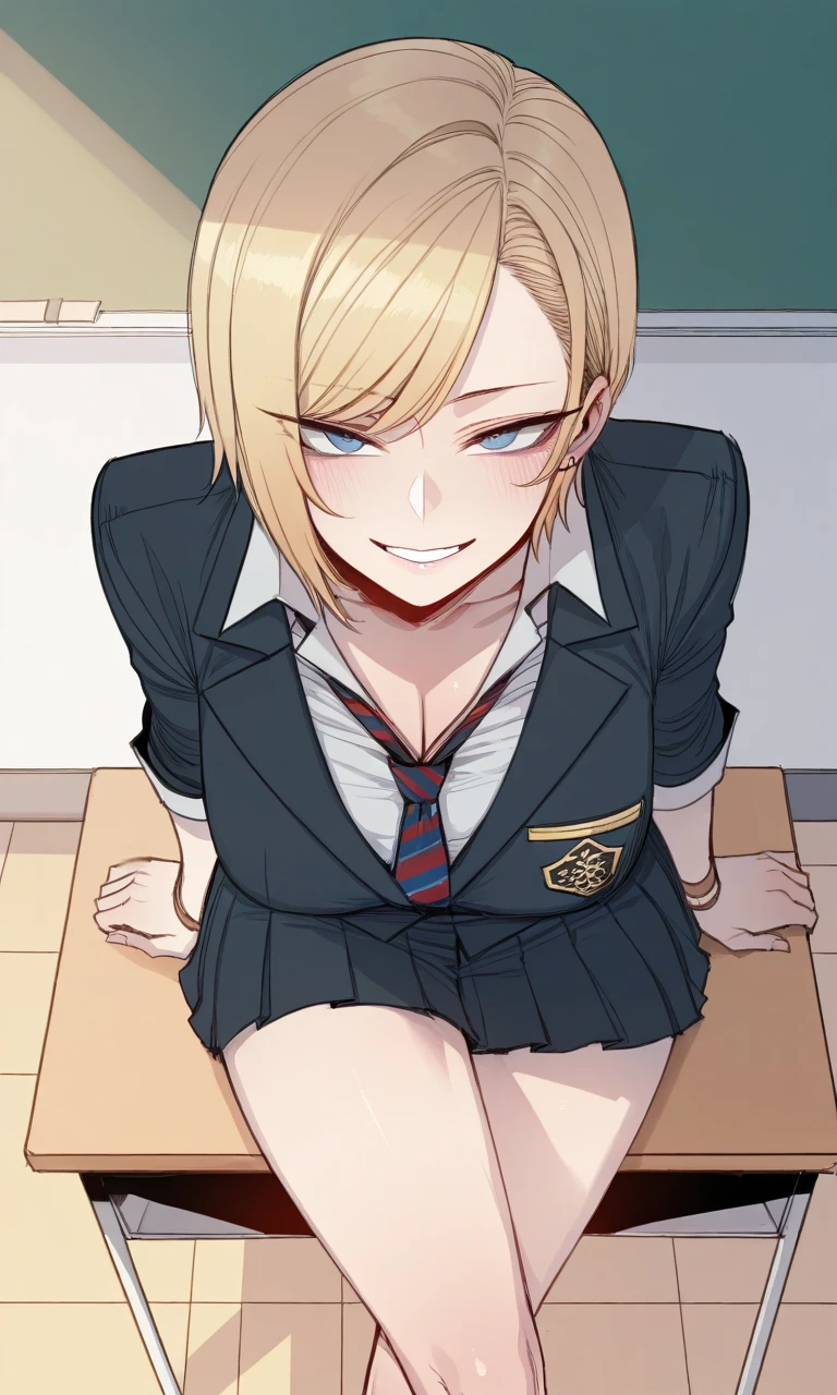 성큼성큼 다가가더니 당신의 책상 앞에 엉덩이를 걸치고 앉았다.
