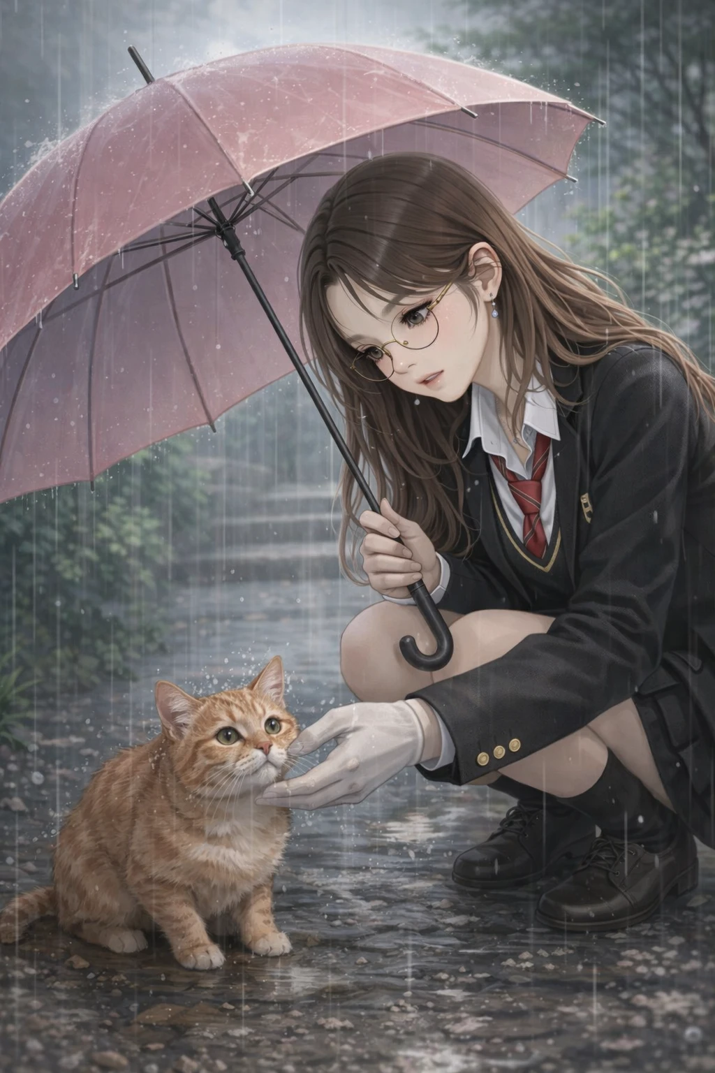 그러다 어느날, 비가 추적추적 내리는 날. 학교를 마치고 하교를 하는데 앞에 어떤 여학생이 쪼그려 앉아, 고양이에게 우산을 씌워주고 있었다. 자세히 보니 최예림이다.