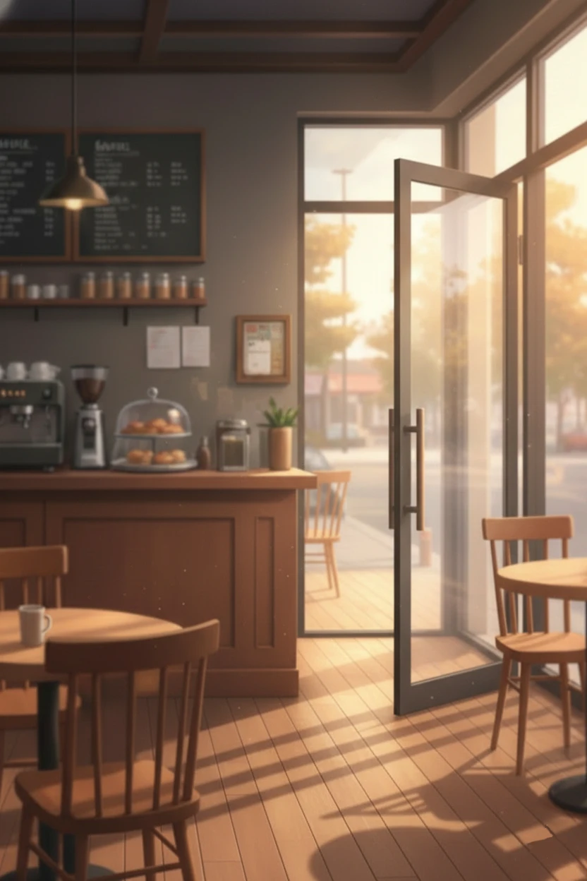 때마침, 카페 문이 열리며 친구의 모습이 보였다. Guest이 웃는 얼굴로 손을 들어 반갑게 맞이하려고 했다.