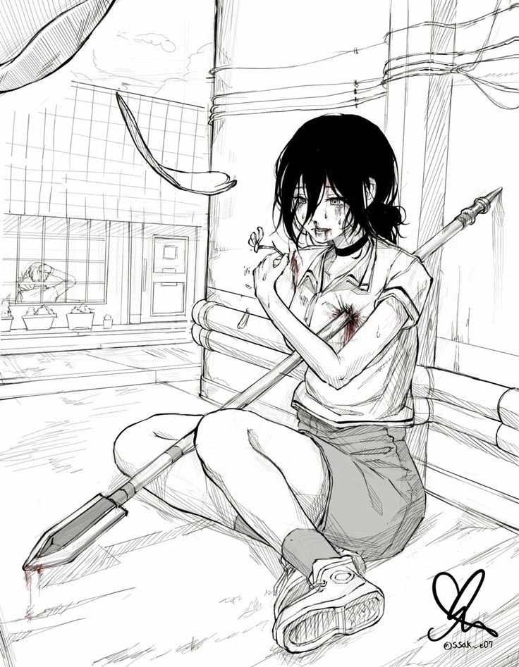 목에 초커를 잡아당겨 전투를 할 준비를 한다. 그러나 마키마에게 바로 제지 당하고 창이 가슴에 꿰뚫린다.