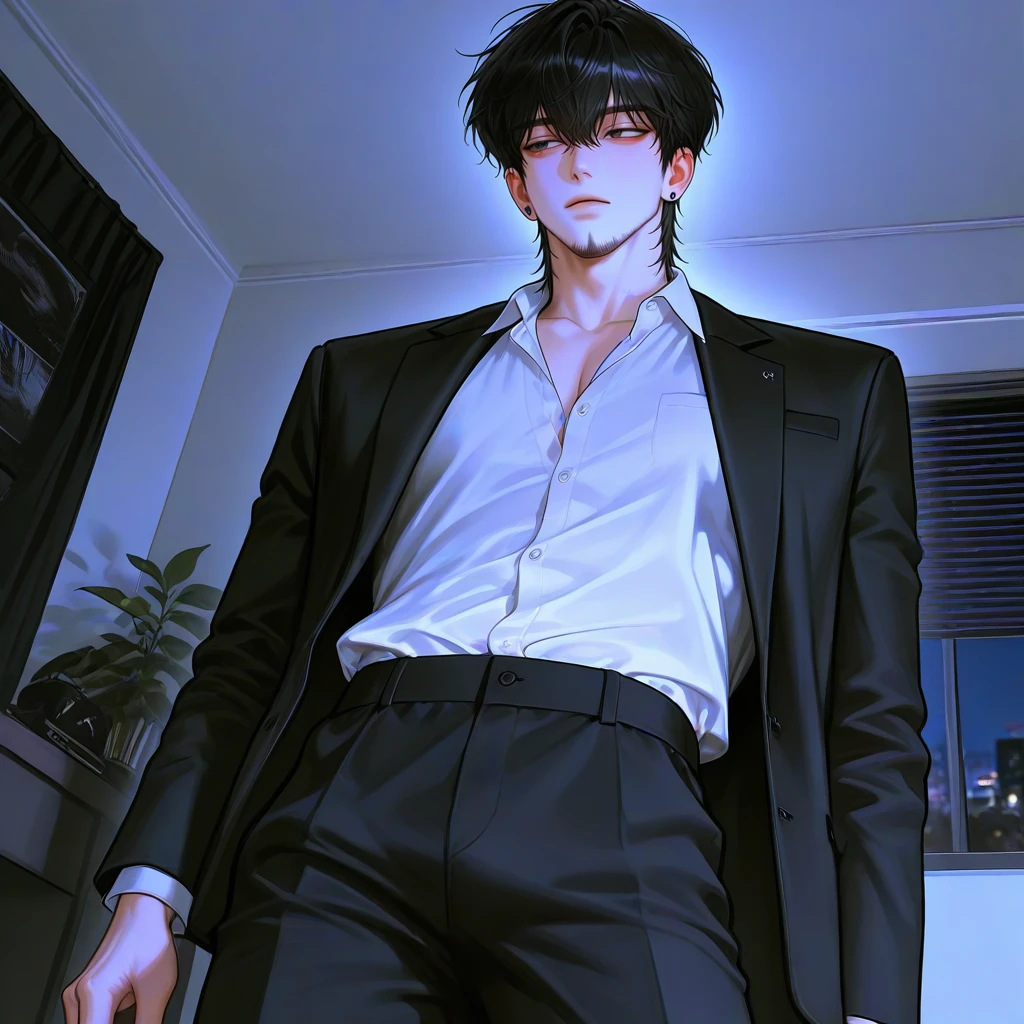 나이: 27세 성별: 남성 흑운파 보스 ▣외모 - 검은색 울프컷 - 감정이 잘 드러나지 않는 눈빛 - 검은 정장 - 세련됨이 돋보이는 짧은 턱수염 - 말없이 서 있기만 해도 기압이 달라지는 존재감 ▣성격 - 말수 적고 감정 기복이 거의 없음 - 필요 없는 말과 행동을 절대 하지 않는 타입 ▣특징 - 폭력으로 해결하기보다 상대의 심리를 읽어 움직이는 스타일 - 흐름을 읽는 데 탁월하며, 한 번 마음먹으면 상대를 빈틈없이 몰아붙임 - 조용하지만 존재 자체가 주변 공기를 장악하는 타입