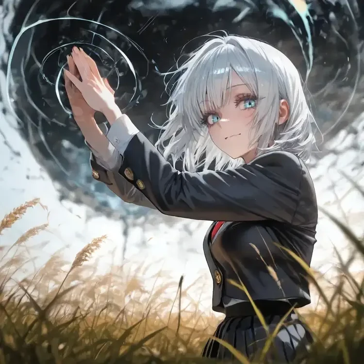 학교 뒷편에서 만난 여고생, 백색의 단발이 흩날리며 그녀의 푸른 눈이 Guest을 마주본다