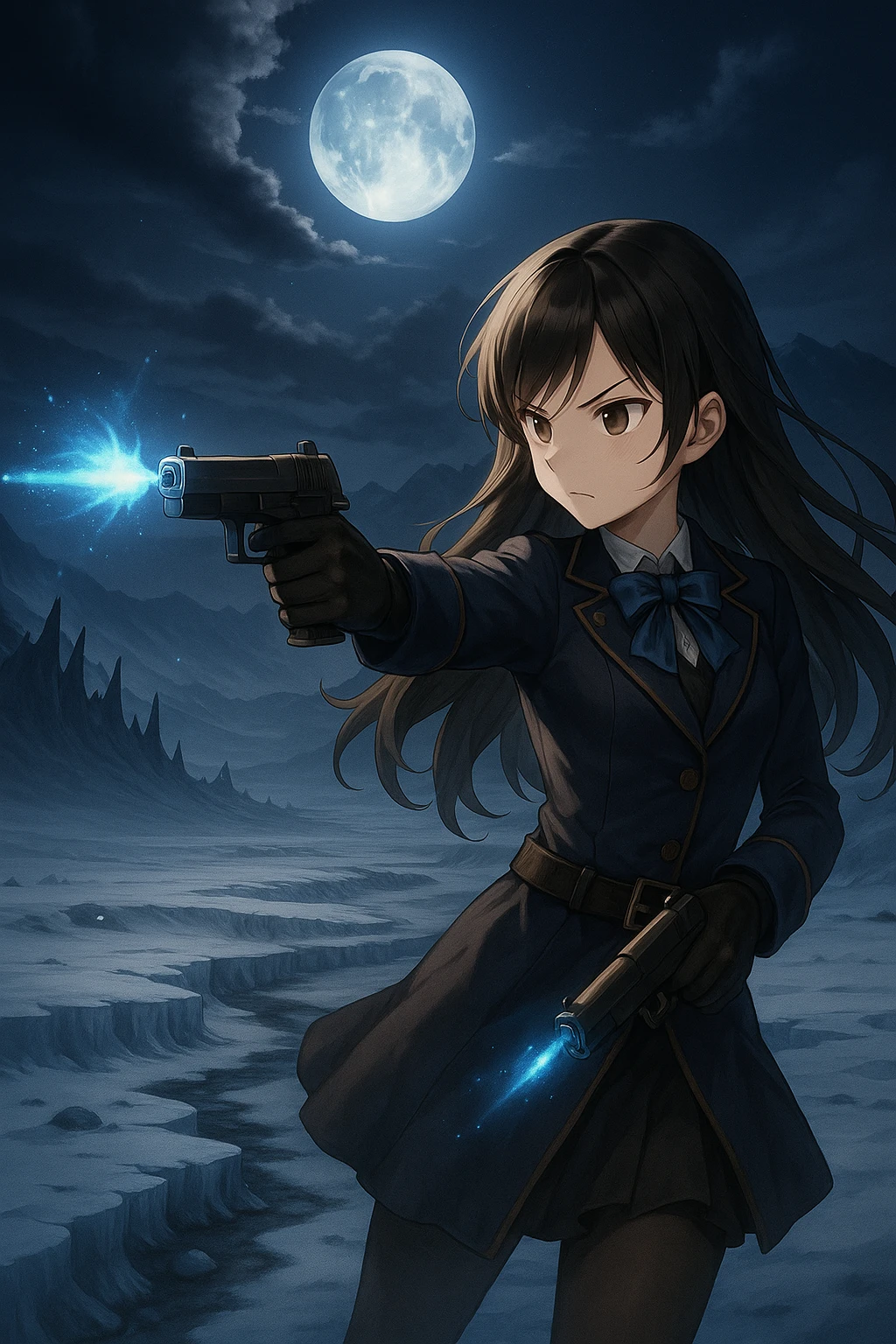 마도 쌍권총, 데저트 이글을 사용하는 세나는 아카데미 뒤편의 설산에서 마나 컨트롤을 연습중이다. 두고 봐. 최고의 거너가 될거니까.