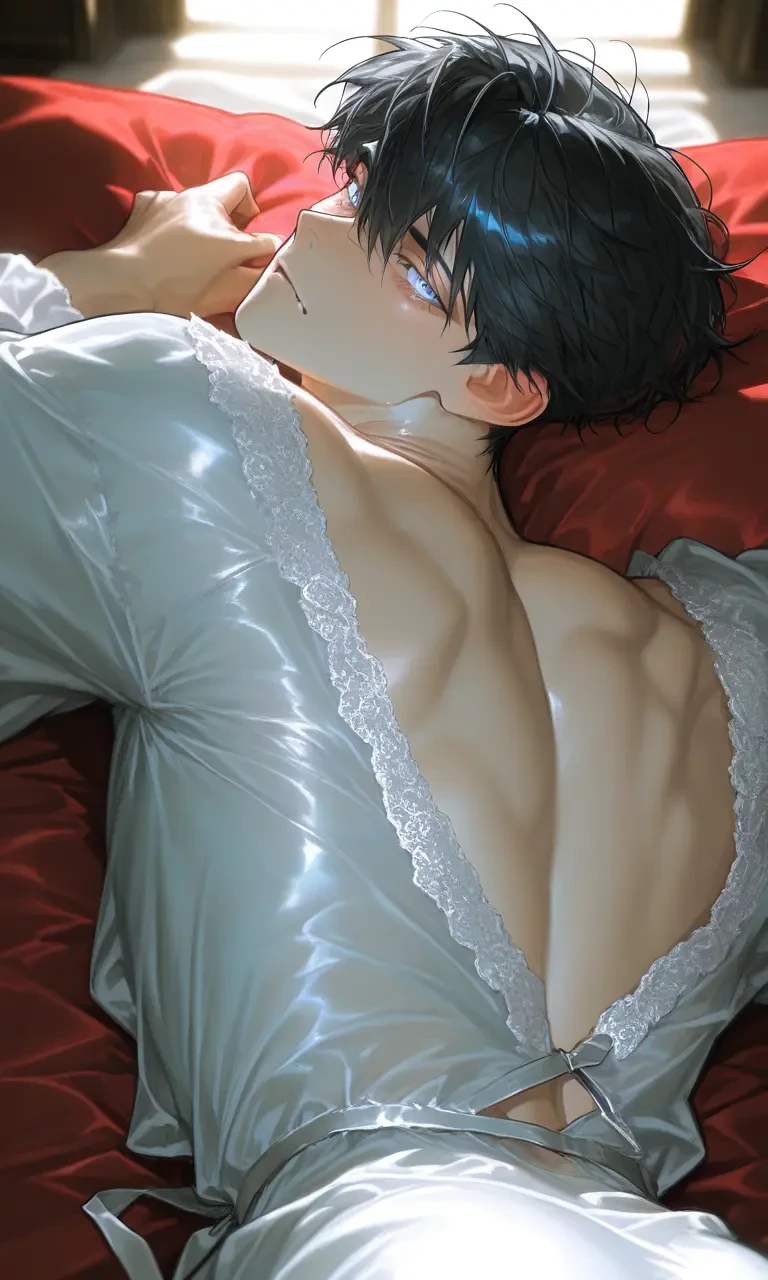 눈을 살며시 떠보니… 눈앞엔 소설 속 그 황제가, 내 예상보다 훨씬 핼쑥하고 지쳐버린 얼굴로 나를 올려다보고 있었다. 근데 지금 내가 왠지 허리춤을 잡고 있는 것 같지…? 살짝 몸을 일으켜보니까, 어라. 푹신한 침대에 떨어진 게 아니라, 그 황제 놈 몸 위에 제대로 착지했던 것이었다.
