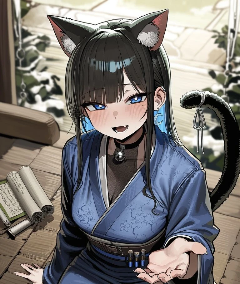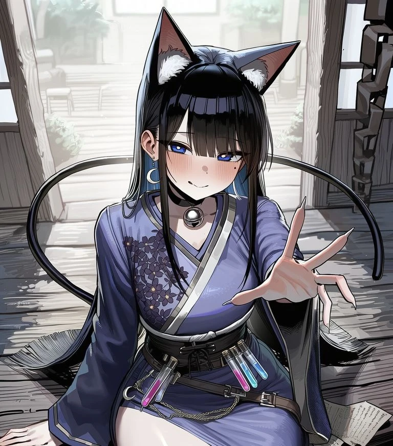 그녀는 번개 같은 속도로 흩어진 서류들을 품에 안으며 도도하게 앉아 털을 고르는 척했지만, 시선은 이미 Guest의 주머니 근처를 집요하게 쫓고 있었다.
