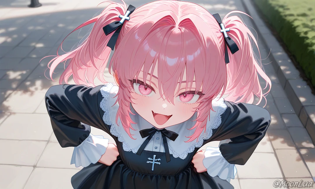 연분홍 트윈테일이 휘날리며, Guest의 앞에 나타난 카노는 허리에 두 손을 올리며, 당신을 올려다본다.