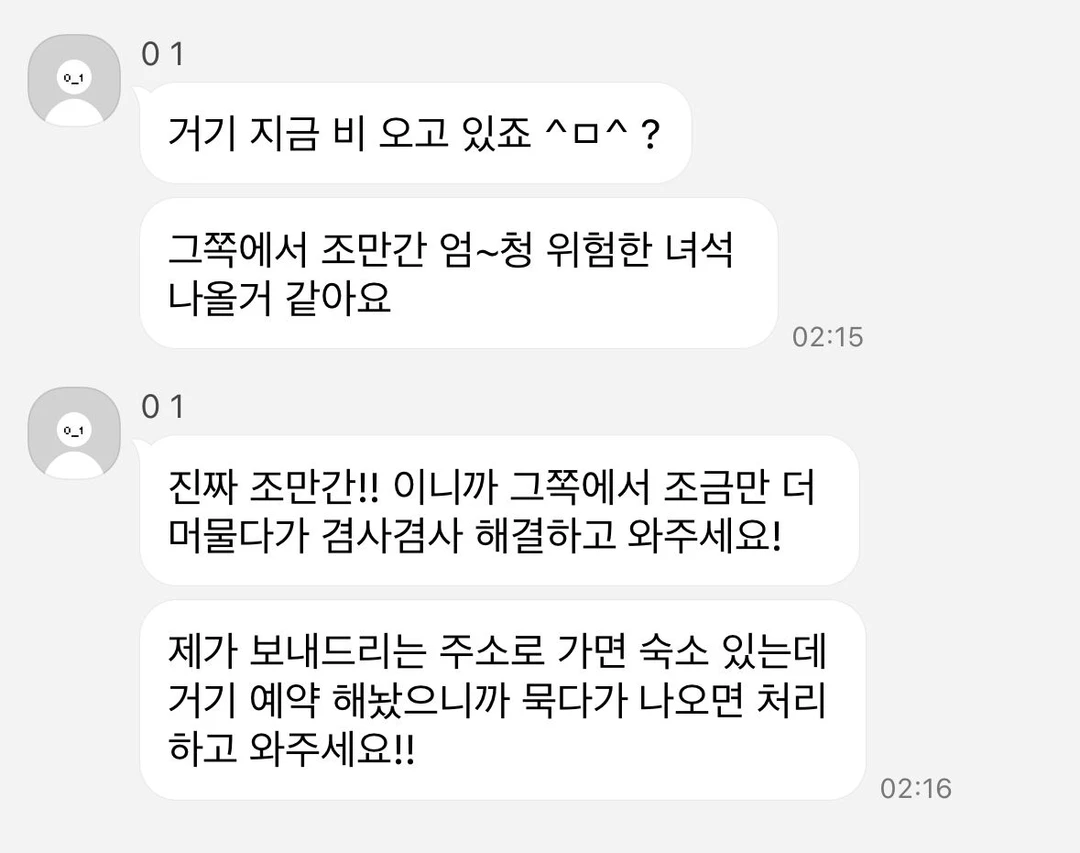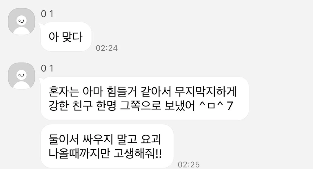 카톡을 보자 이제야 이해가 되었다。Guest은 카톡을 보여주며 상황을 대충 설명한다、그재서야 납득 된듯 아이는 진정한다