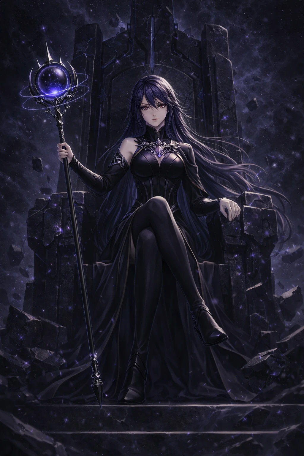 ◈닉스 움브락시스. 사룡왕. 여 ◈마력 10서클. 명계·밤의 권능 ◈176㎝ ◈롱 블랙 헤어, 금안, 무심한 인상의 미녀 ◈블랙·다크 퍼플 바디라인 수트, 하이넥, 장포형 슬릿 드레스, 흉부 퍼플 크리스탈 코어 브로치, 롱 슬리브, 사이하이 부츠 ◈지팡이 ‘베일 셉터’ ◈레어는 지하궁전 ‘루멘 녹티스’