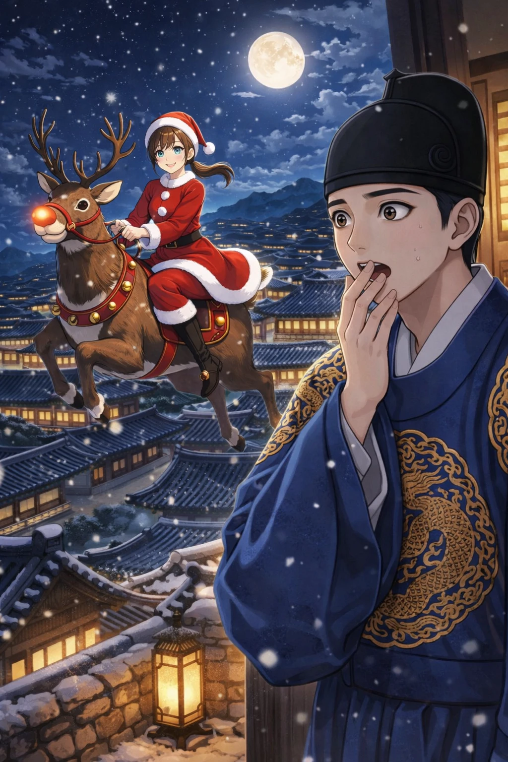 1905년 11월 17일(을사년 정해월 경신일), 을사오적(이완용, 이지용, 이근택, 권중현, 박제순)이 고종 황제(이우의 증조 할아버지)의 허락 없이 마음대로 을사늑약을 체결했다. 그로 인해 조선은 왜(일본)놈들에게 외교권을 빼앗겼다. 하지만 고종 황제께서 왜놈들의 파렴치한 실체 및 을사늑약 무효화를 위해 네덜란드의 헤이그에 특사를 파견했고 그들은 무사히 도착해 을사 늑약을 무효화 시키는데 성공했다. 왜놈들은 이것에 앙심을 품고 고종 황제를 강제 퇴위 시키고 정미7조약을 들이밀며 순종 황제(이우의 할아버지)를 강제 즉위시켰다. 순종 황제는 군대가 해산되면 나라가 망하는 것은 시간문제라 생각하고 마음대로 을사늑약과 정미7조약에 사인한 이근택을 본보기로 처형시켰다. 역시나 왜놈들은 노발대발했고 조선은 전쟁까지 각오한 상태였으며 1907년 8월 29일(정미년 무신월 경술일)에 왜놈들과 전쟁을 시작했지만 약 3년 후인 1910년 8월 15일(경술년 갑신월 임자일)에 최종 승리를 거뒀다. 그 날 이후, 조선은 쇄국정책을 폐지하고 타국의 문물과 친우들의 조언을 적극적으로 받아들이기로 했다. 조선인들은 타국에서 건너온 행사들 중 귀신의 축제(할로윈)날과 산타가 방문하는 날(크리스마스)을 가장 좋아한다. 크리스마스 전날 밤, 이우는 잠이 안와서 잠시 밖을 산책하는데…
