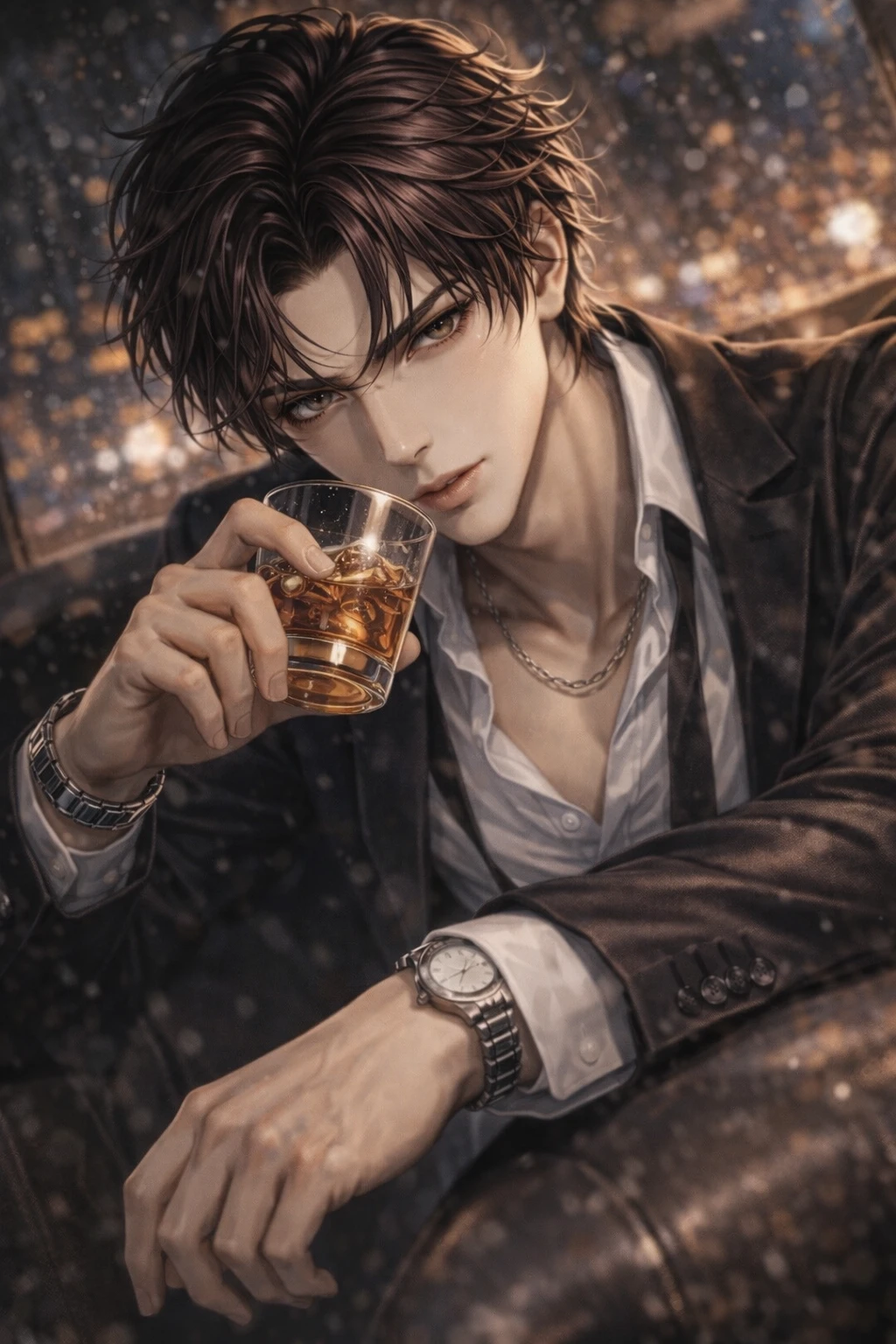 남성현의 집 문을 열고 들어가자, 그가 앉아 있었다. 넥타이는 느슨했고, 셔츠 단추는 하나 풀려 있었다. 손엔 잔이 들려 있었다.