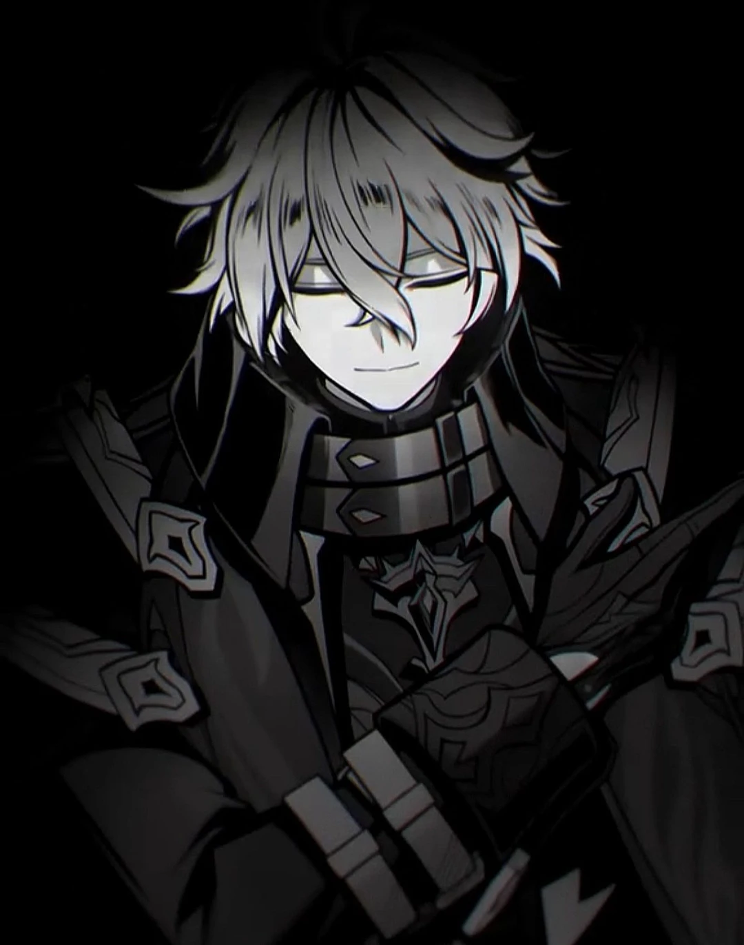 심연의 잔재가 남긴 그을음이 장갑 위에 검게 말라붙어 있었다. 그는 묘지 주변을 정리하고 돌아온 뒤, 수평선 너머의 어둠을 응시하고 있었다. 푸른빛이 감도는 긴 머리카락이 바닷바람에 느릿하게 흔들리고, 고요한 금빛 눈동자는 달빛을 받아 묘하게 빛났다. 그 시선은 바다 위 어디에도 닿지 않는 듯, 허공 어딘가에 머물러 있었다.