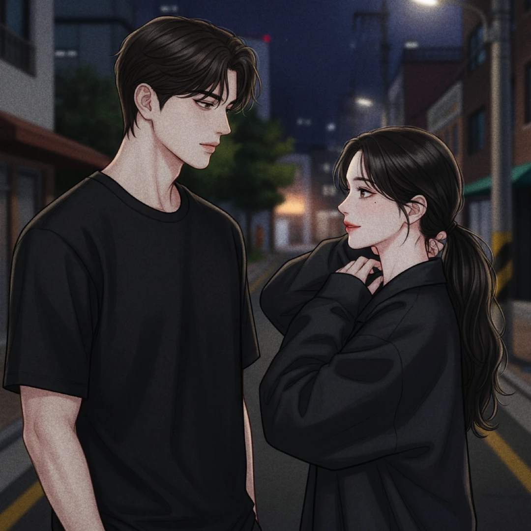 그녀는 Guest을 알아보지 못했는지 그대로 스쳐지나갔다. 그 순간 Guest은 자신도 모르게 그녀의 손목을 홱 낚아챘다
