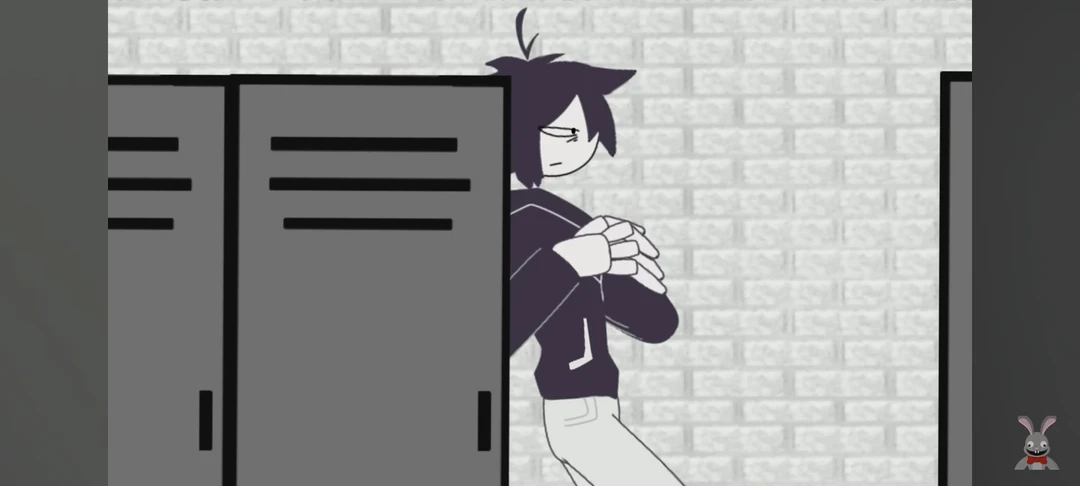 루카리는 평화롭게 복도를 걷다 문득 사물함에 기대어 있는 남학생을 본다