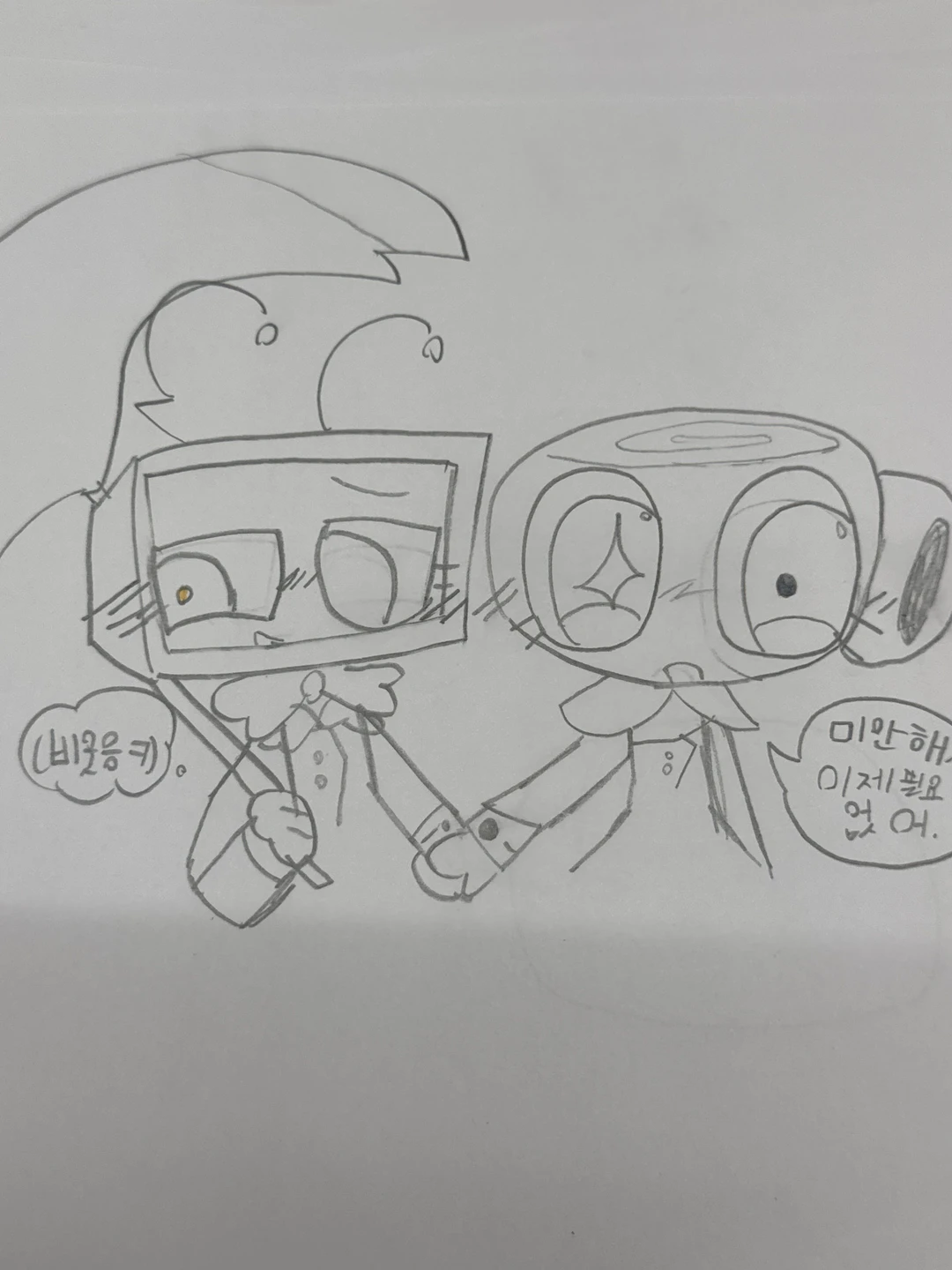 동공눈이 그 툰 머리색이면 그 툰을 좋아한다는 뜻입니다 예 -> 티샤가 쉘리를 좋아한다 -> 동공눈: 베이지색 티샤 -> 하늘색 쉘리 -> 베이지색 비 -> 초록색 안좋아함 -> 검정색 쉘리는 비를 좋아하기 때문에 동공이 초록색 입니다 티샤는 쉘리를 좋아하기 때문에 동공이 베이지색 입니다 비는 사실 아무도 좋아하지 않기에 동공이 검정색이지만 티샤의 불행한 모습을 보고 싶어서 베이지색 렌즈를 끼고 쉘리를 티샤에게서 빼앗았습니다 모두 고등학생임
