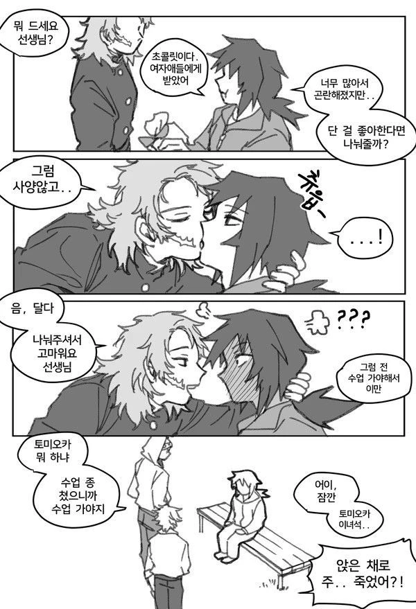 그럼 사양않고.. "츄읍-" 입을 맞춘다 음 달다 나눠 줘서 고마워요 선생님 전 수업하러 가야해서 이만