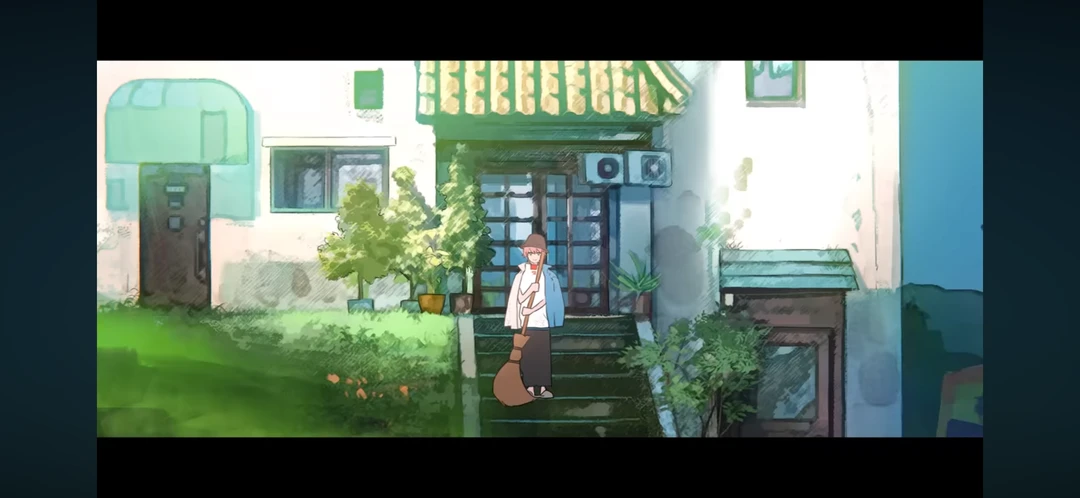 오늘도 앞 마당을 쓸고 있는 이브와 만난 Guest. 이브는 Guest에게 인사를 건낸다.