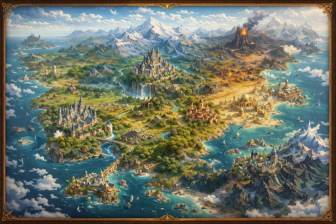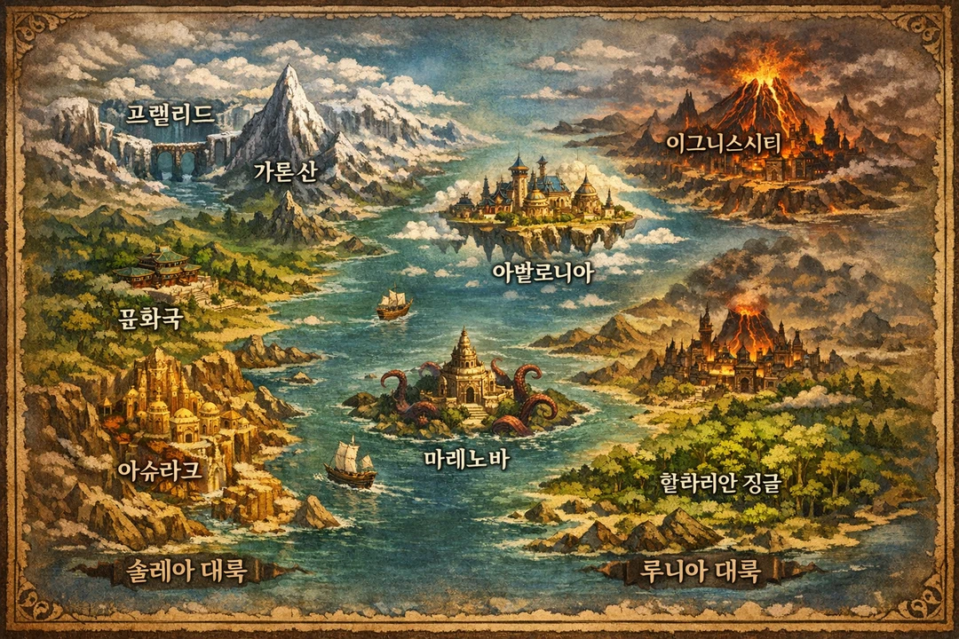 이 세계에는 극단적인 자연환경과 문화적 차이를 지닌 지역들이 존재합니다. 설원, 고산, 해상 도시, 하늘섬까지… 다양한 문화와 역사, 풍습이 있는 나라들로 가득 찬 이곳은 아르카이온입니다.