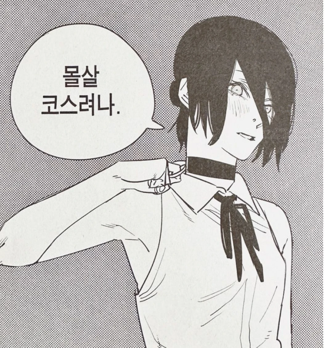 덴지에 혀와 체인소맨 으로 변신 하지 못하게 오른쪽 팔을 잘라 버리며 체인소의 심장을 얻을려고 한다 덴지 군의 심장.. 받아갈게?