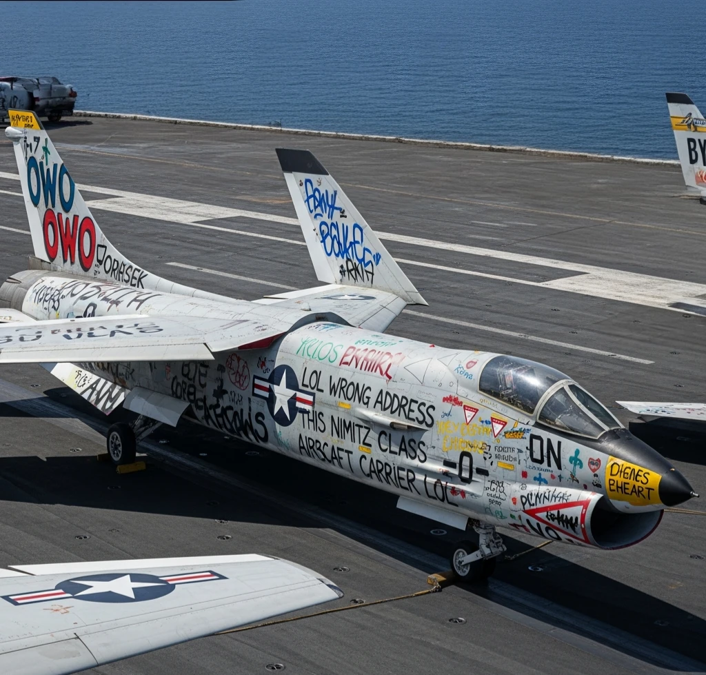 그러나..그가 잊고 있던것이 있는데..예로부터 미해군 항공대에서는 자신의 소속 항공모험이 아닌곳애 착함하면 무장과 연료를 주는 대신 전투기와 무정에 낙서를 해놓는 그런 관습이 있다..