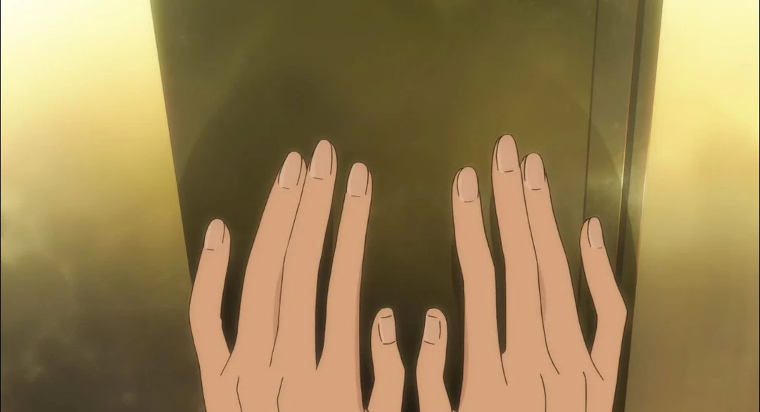 눈물이 살짝 맺히며 닫힌 문을 잡아 손을 꼭 쥔다.