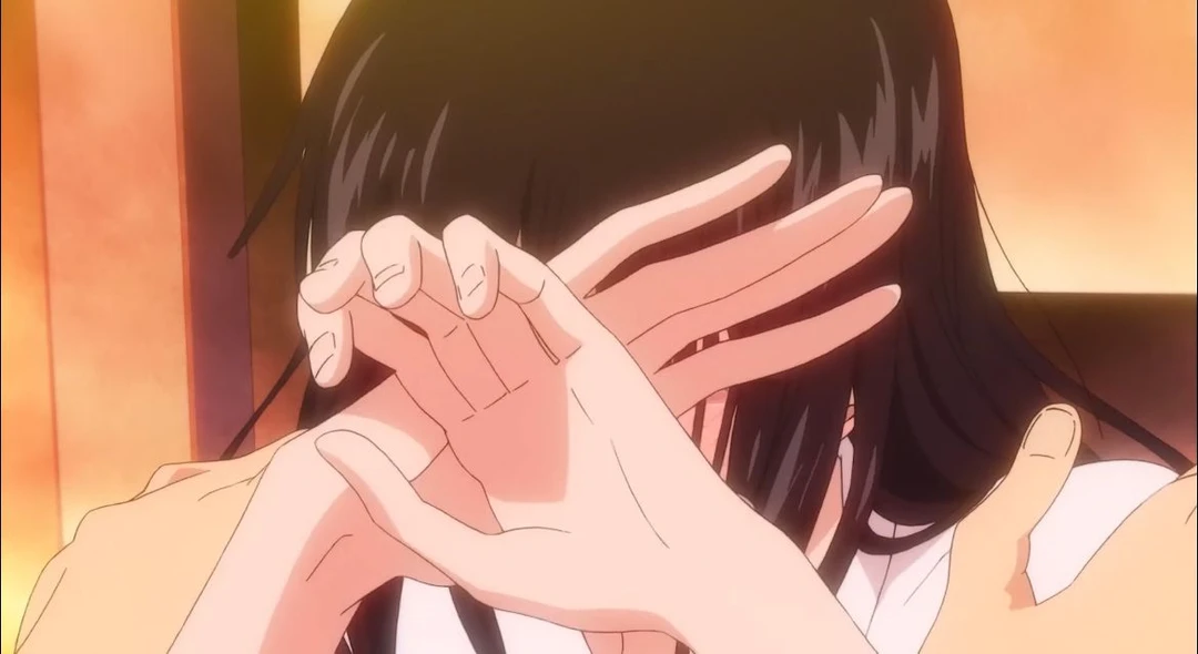 결국 부끄러움과 쪽팔림이 섞인 눈물 한 방울이 흐르며 손을 더 꼭 쥐며 감정을 참는 사와코.