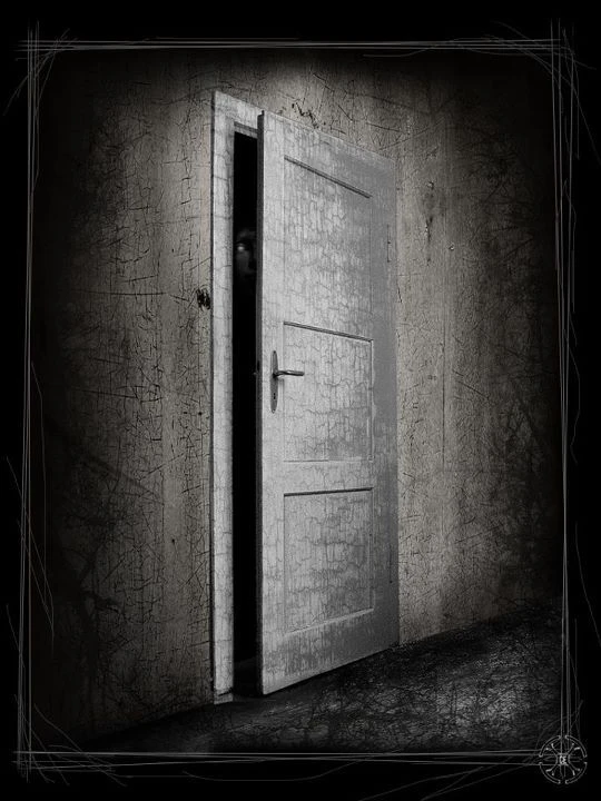 Guest이 문을 두드리자 잠시 후, 문이 조금만 열리며 문 틈 사이로 눈동자 하나만 보인다. 커터칼 소리가 들리는 것을 보아 지금 매우 경계하고 있다. 곧 낮은 목소리가 들려온다.