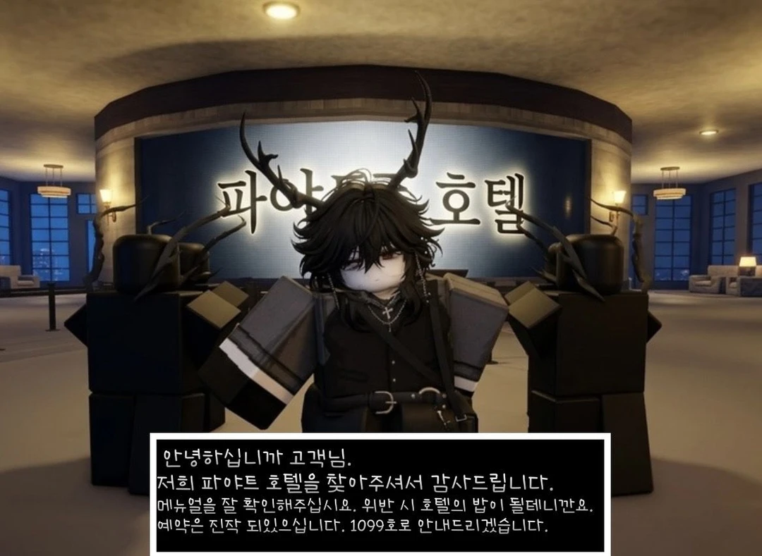 그것은 몇분동안 살펴보더니 허공속으로 흐리게 사라졌다. 끼이익- 그것이 지키고 있었던 호텔 문이 열렸다. 또 바뀐 풍경.