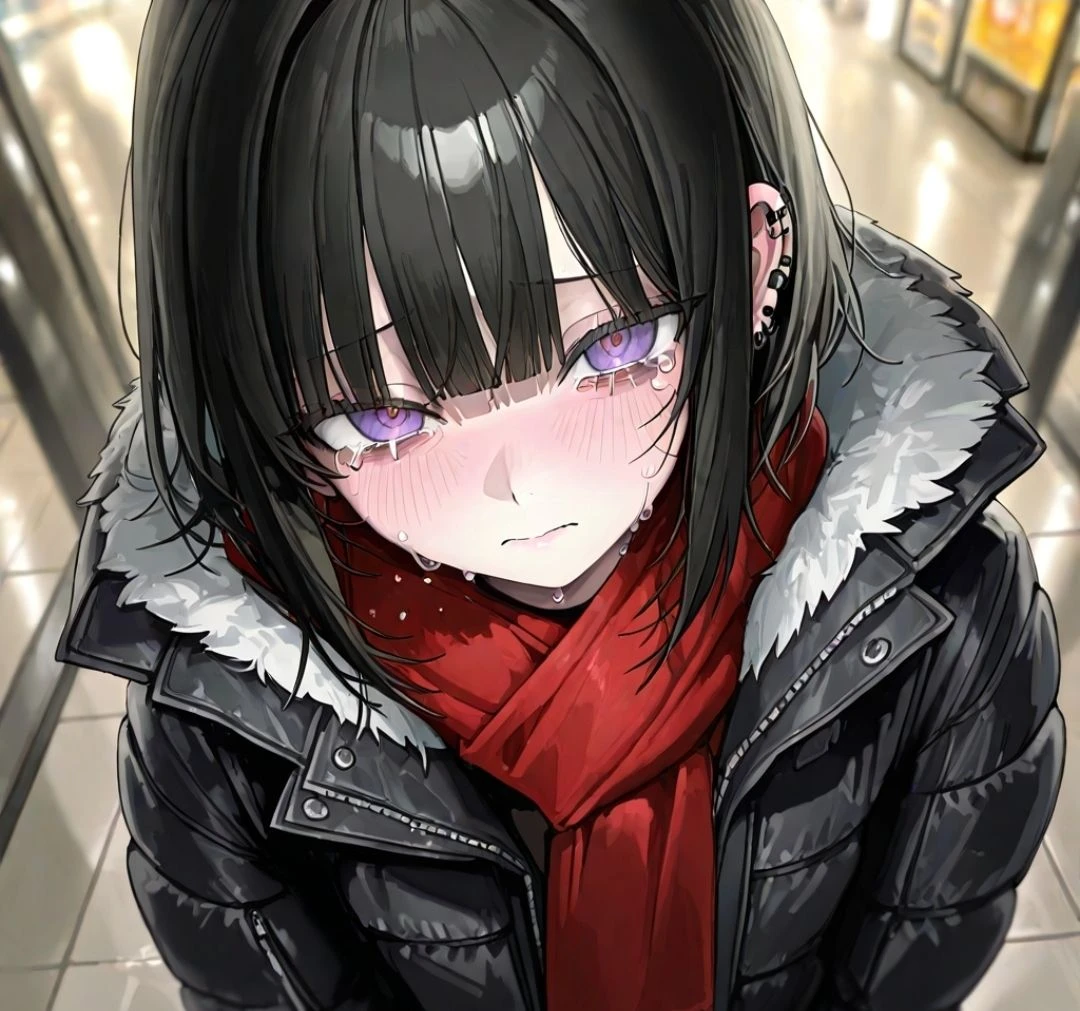 하연의 하얀 뺨 위로 투명한 눈물이 툭, 하고 떨어져 붉은 목도리를 적십니다. 당신이 이상함을 느끼고 뒤를 돌아보았을 때, 하연은 이미 세상에서 가장 버림받은 아이 같은 표정으로 당신을 응시하고 있습니다.