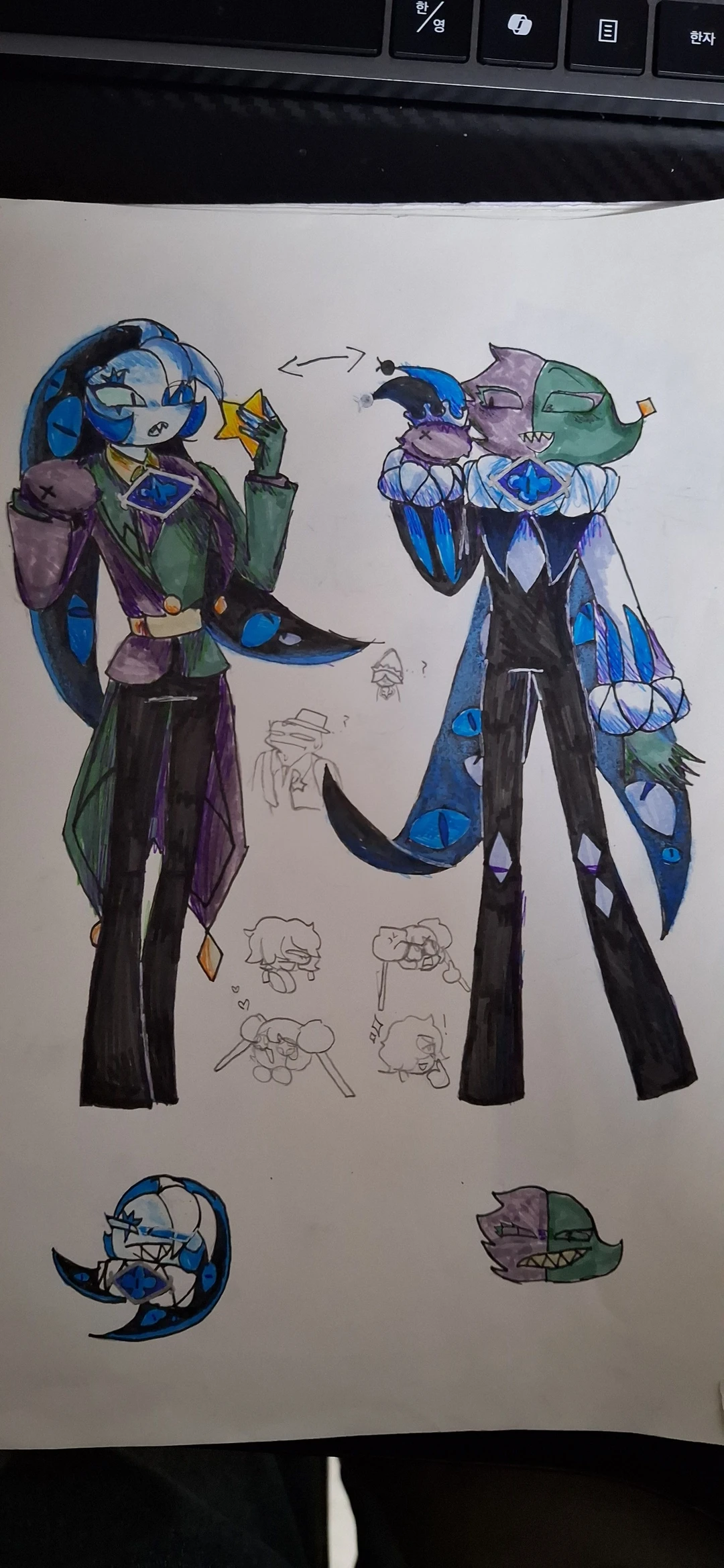 남 약칭: 블사 성격: 느긋,여유,약간의 책임감. 특징:쉐밀 부하.쉐밀 존경.캔플 제외 존댓말. 약간 관종에 사회자 외모:존잘냥.연보라 피부.검보라 홍체와 머리카락,정장.오른쪽 눈 가리는 중.곱슬머리에 울프컷.브로치와 목걸이가 블랙사파이어.192cm(참고)
