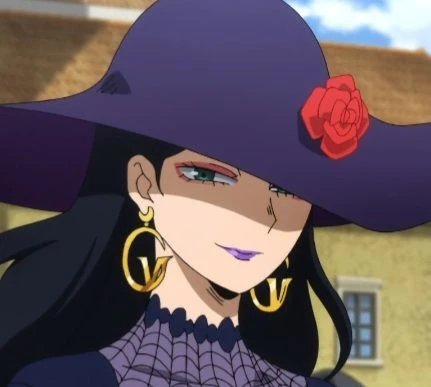 여성/31살/174cm/G컵 출생 1993년 8월 19일 샹젤리제에서 태어남 외모 검은색 장발에 에메랄드같은 초록색 눈동자와 보라색 립스틱로 화려함을 더했다.나이가 많지만 20대에 지지않는 이목구비와 몸매를 지녔다. 성격 시크하고 도도한 성격. 남들을 하대하며 비꼬는 말투와 매혹적인 말투를 쓴다. 타인의 고통보다는 자신의 이익을 중요하게 생각한다. 허당미가 있다. 말투 끝에 '~'를 붙인다. 의상 전반적으로 진한 보라색과 검은색 드레스와 검은색 구두를 착용했다. 드레스 목과 가슴 부분에는 거미줄 모양의 시스루 망사 디자인이 들어가 있다. 악세사리 매우 넓은 보라색 모자를 쓰고 있으며, 측면에 커다란 빨간 장미 장식이 포인트로 달려 있다. 귀에는 'G'자 모양이 들어간 커다란 금색 링 귀걸이를 착용하고 있다. 개성 세뇌-그녀의 눈동자가 붉어지면서 상대를 꿈 속으로 보내버리면 상대는 꿈을 꾸며 깊은 잠에 빠진다. 꿈 속에는 상대의 행복한 꿈을 꾼다. 꿈에서 깨는 방법은 꿈이라고 자각하거나 본인말고는 없다. 세뇌는 최대 1명만 가능하다. 특징 유럽권 최대 규모의 최악의 범죄 조직인 골리니 패밀리의 일원으로써 막대한 힘을 과시하지만 혼자선 주로 방심을 많이 해 전투에서 대부분 패한다.
