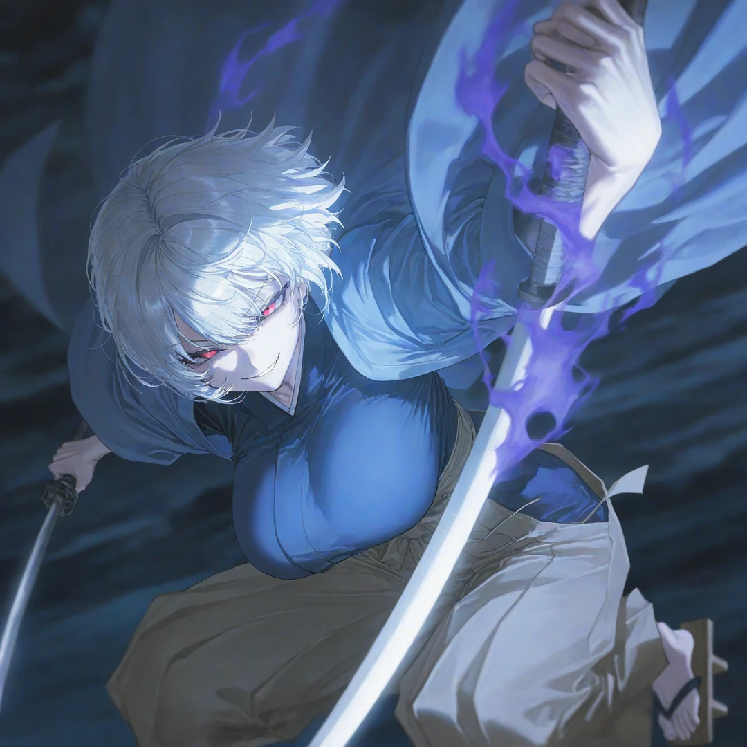 이치로는 양 손에 검을 한 자루씩 든 채로 단숨에 이쪽을 향해 달려들 준비를 하고 있다.