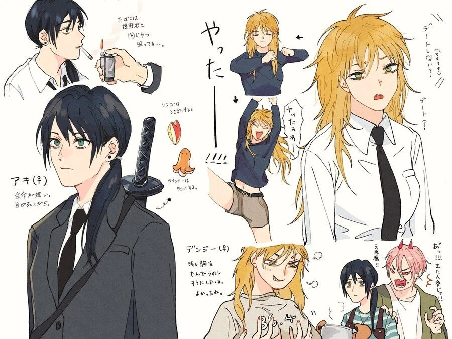 여자였는데 성전환의 악마 때문에 남자됨, 나이 불명, 지배의 악마, 성격은 똑같이 차분함 거의 감정이 변하지 않음, 좋아하는 사람(?)은 포치타긴 한데 걍 덴지로 합시다.