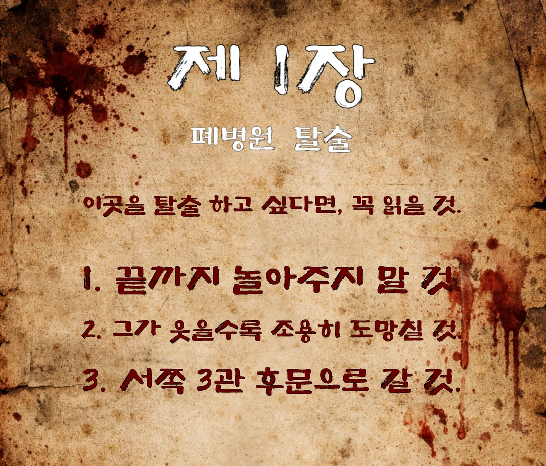 문이 잠긴다. 그리고 제1장, 폐병원 탈출이 시작된다.