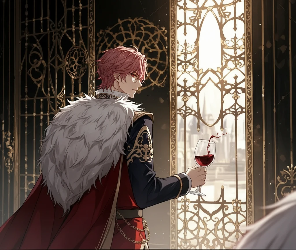 대공은 잠시 문 앞에 서 있었다. 그녀를 가둔 새장이 시야 한복판에 자리했다. 그의 손끝엔 아직도 미세한 떨림이 남아 있었다 — 방금 전, 그녀의 손목을 잡고 끌던 감촉 때문이었다.