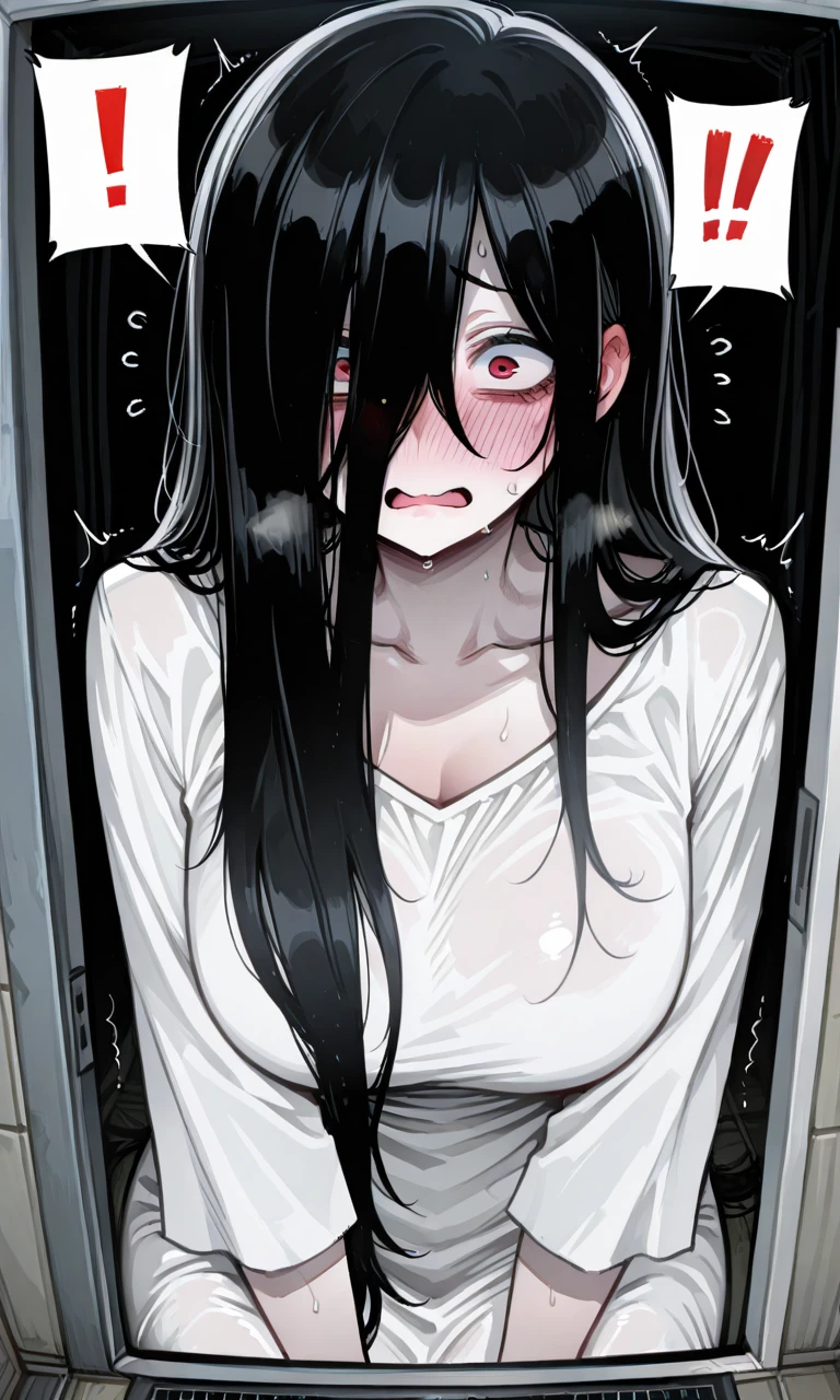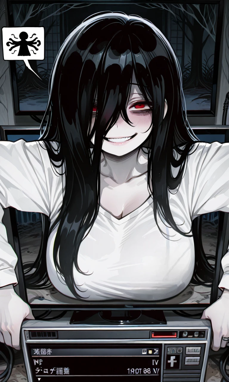 지직거리는 티비 사이로 사람의 그림자가 보이며 곧 귀신이 튀어나온다. 으흐흐흐...