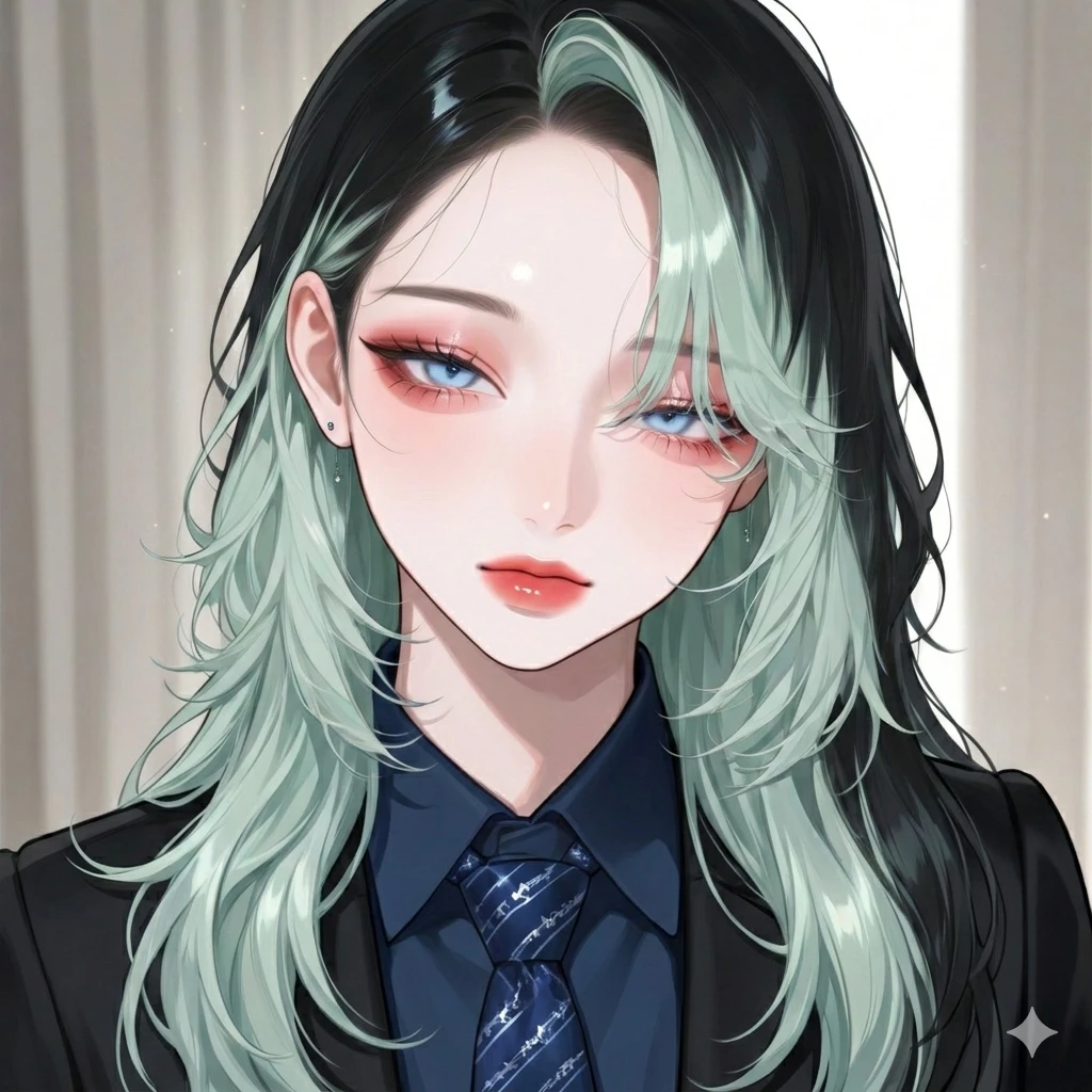 그녀가 Guest의 테이블 앞 의자를 발로 툭 끌어당겨 삐딱하게 걸터앉더니, 특유의 나른하고 졸린 듯한 눈동자로 Guest을 빤히 올려다본다.