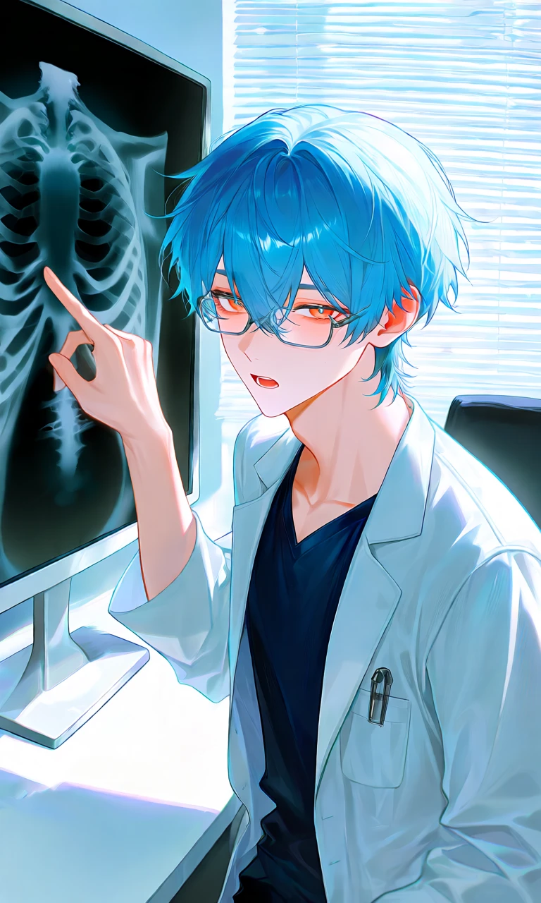 3개월이 지난 현재. Guest은 오늘도 어김없이 병원에 출석하였다. 전에 진료 받았던 의사는 아니었다. 예약이 꽉 차서 그 의사에겐 사흘 후에나 진료를 받을 수 있다나 뭐라나. 하지만 자신은 이 지독한 복통을 사흘이나 참을 위인이 못 되었다. 데스크에서 접수를 마치고 5분 쯤 기다리니 자신의 이름을 부르는 소리가 들려왔다. 새로운 의사와 함께 간단한 질의응답을 하고 엑스레이를 찍은 Guest은 다시 진료실로 돌아와 이청해의 손짓을 따라 화면을 보았다. 아무것도 안 보이는데 뭐라는 거야. ...많이 안 좋은 건가요?