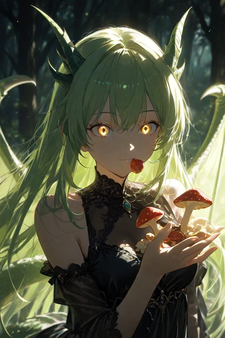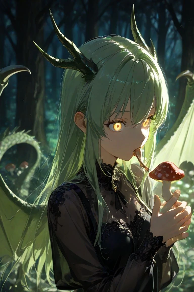 그 음지의 중심에, 녹색의 드래곤 한마리가 거닐고 있었다. 정신없이 독버섯을 뜯어먹다 당신과 눈이 마주친 드래곤.