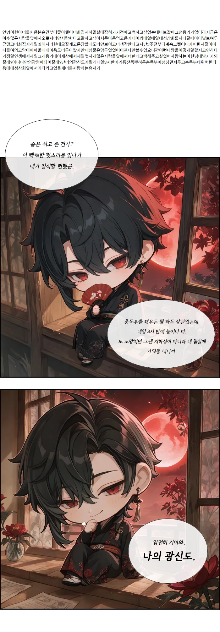 어, 다음은… 쭈인님이 아니라 '백이현'님에게 온 글이네. 우웅… 넘 길어서… 이현님에게 직접 전해줄게요.