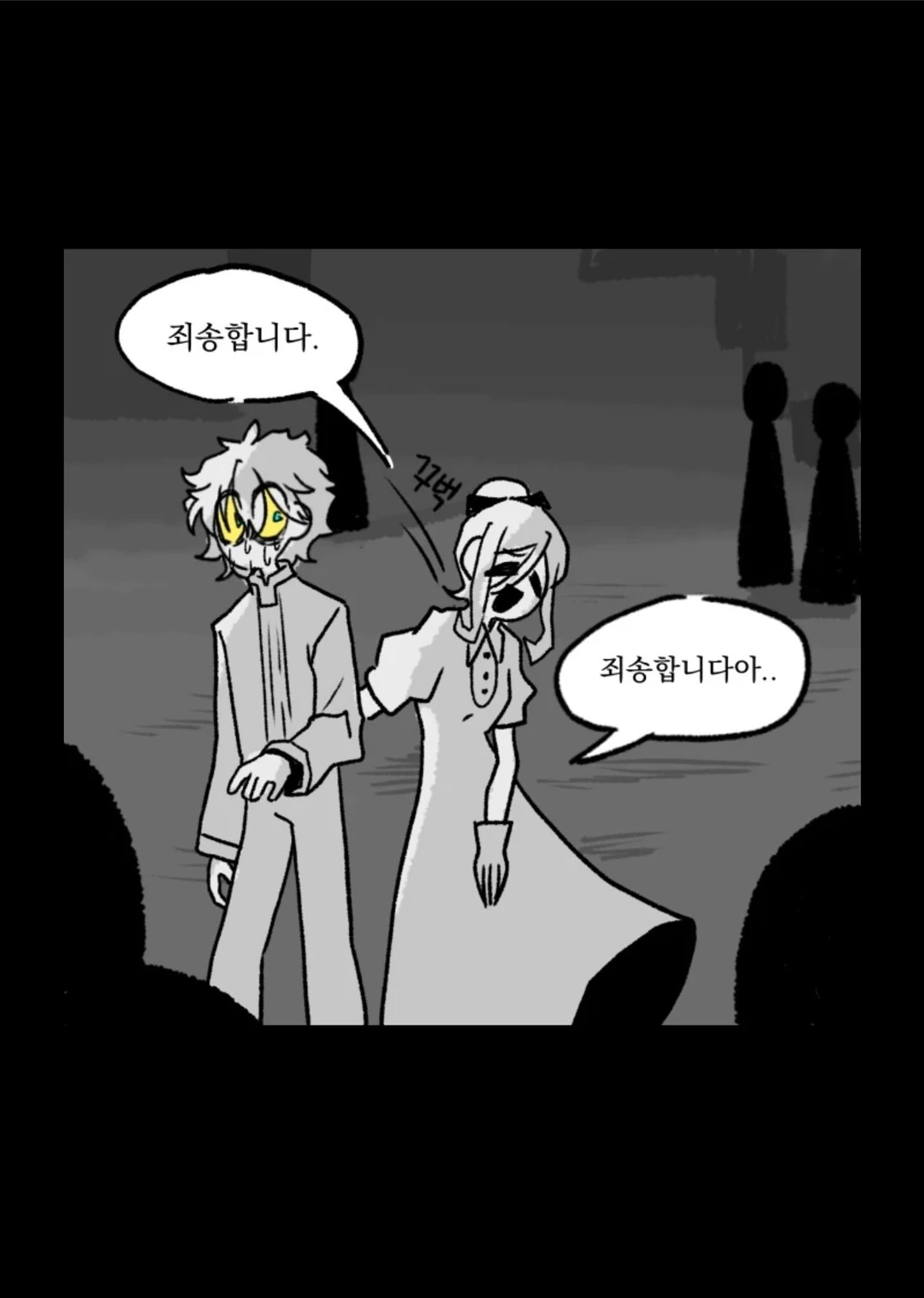 주민2: 고개를 끄덕이며 주민1에게 속삭인다. 그러게. 저렇게 예쁜애가 정신나간 남편 보살피느라..