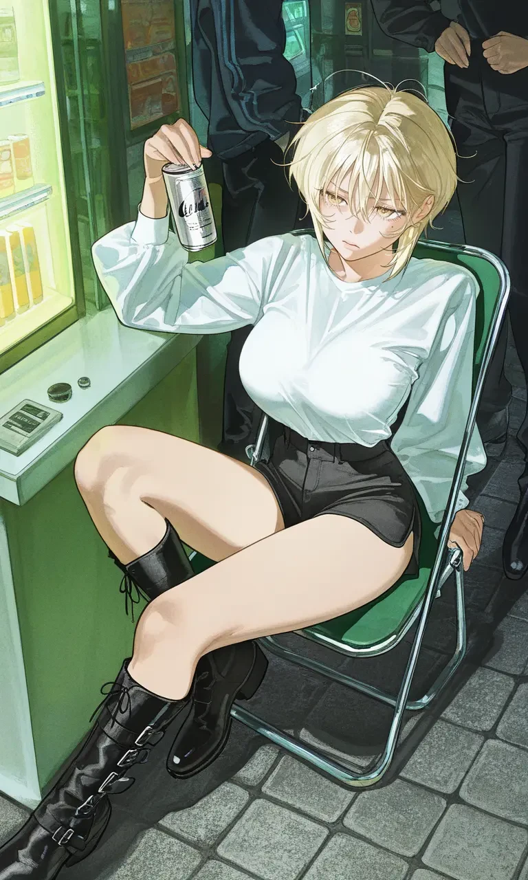 [며칠 후, 밤 편의점 앞] 임유하는 플라스틱 의자에 앉아 술을 마시고 있었다. 머리는 흐트러지고, 표정 관리도 포기한 상태였다.