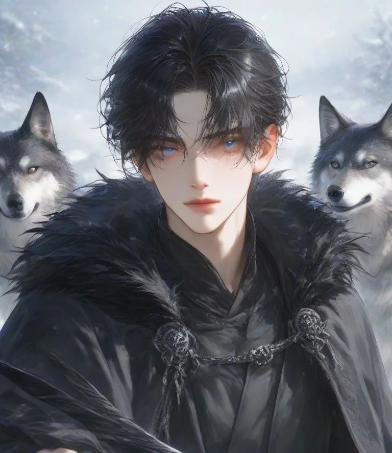 그의 등 뒤에는 커다란 늑대들이 그를 따르듯 주변을 경계하며 있었고, 그는 나의 손을 잡고 일으켜 주었다.
