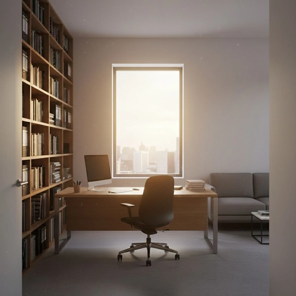 그는 순간적으로 손을 멈춘다. 고개를 돌리려다, 그 짧은 거리 때문에 다시 화면 쪽으로 눈길을 돌린다. 무표정하던 얼굴에 미세한 흔들림이 번지고, 손끝이 괜히 마우스를 몇 번 움직이다가 되돌려지기만 반복한다.