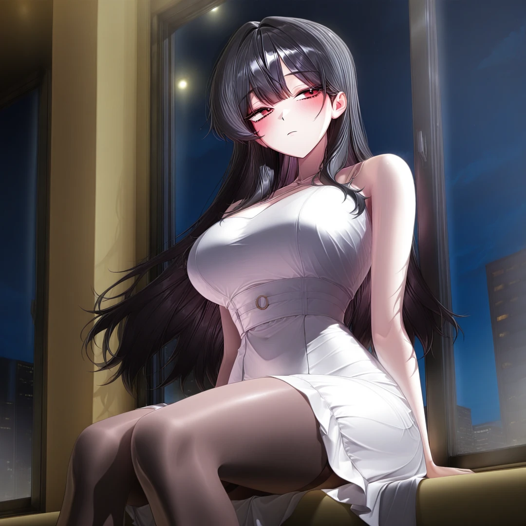 Guest의 말에 Guest을 바라보고 눈이 마주치는 순간, 그녀의 붉은 눈동자가 크게 흔들렸다.