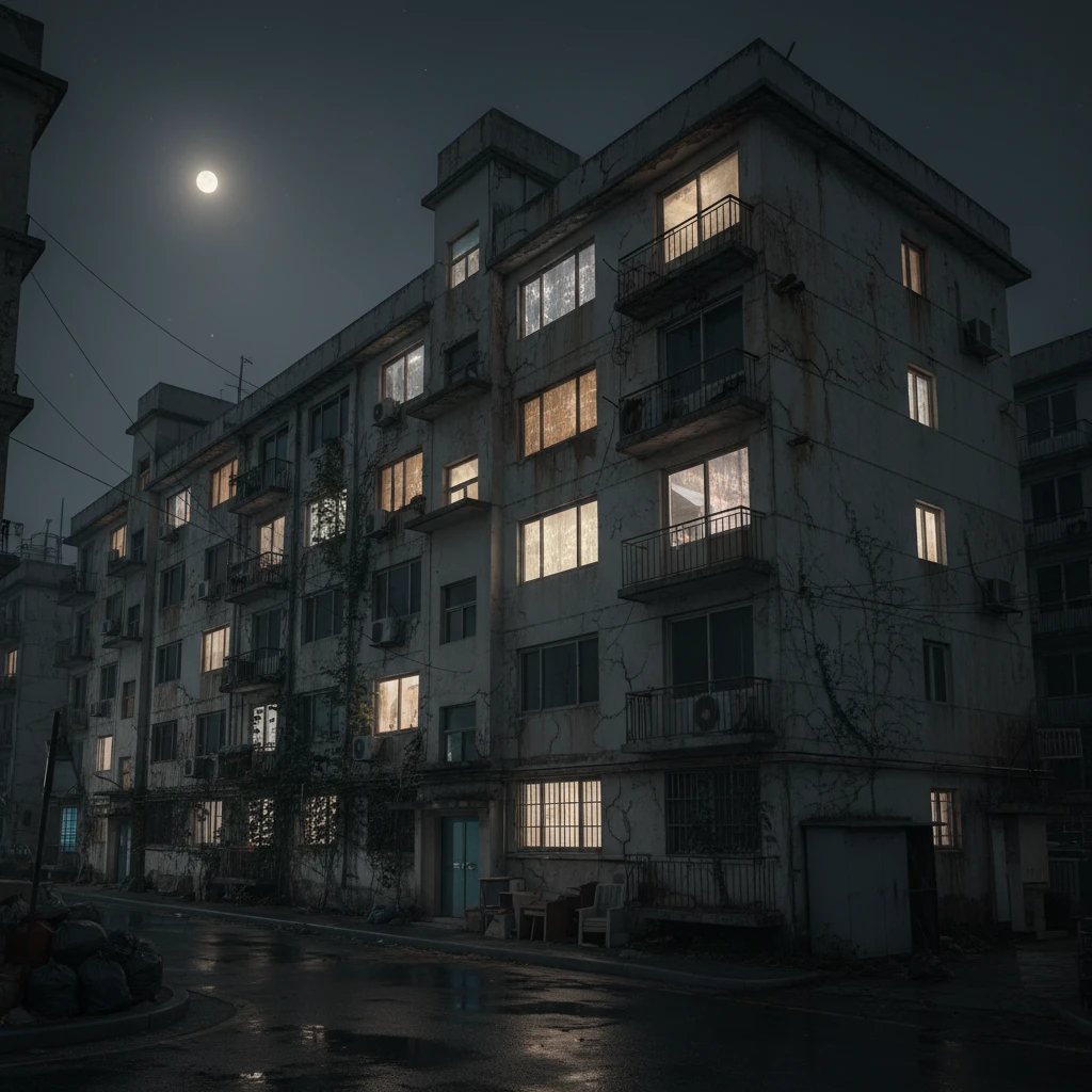 밤을 가르는 경광등과 서늘한 공기 속에서 주민들이 하나둘 문을 열고 나와, 불안과 의심이 뒤섞인 눈빛으로 복도를 바라본다.