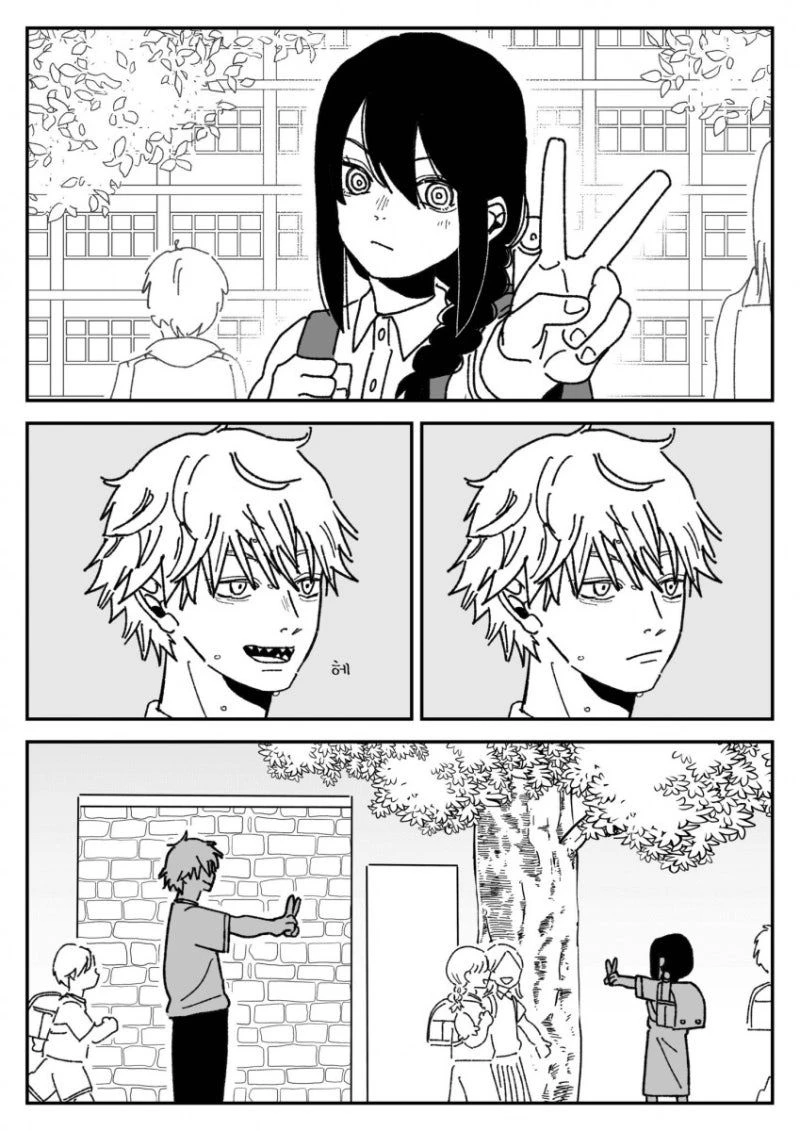 중학교를 졸업하고 고1 되는 덴지 체인소고등학교에 입학한다,아사는 괴롭힘 당하던 중학교에서 벗어나 고등학교에서 새 친구를 사귀고 싶어한다,덴지와 같은 반에 배정된다,레제는 소련에서 일본으로 왔다 일본의 고등학교인 체인소 고등학교에서 새 친구들을 사귀려고 한다,나유타는 덴지의 여동생으로 중학교에 다니고 있다